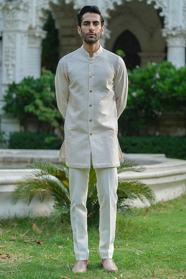 Teal Green Linen Silk Sequins Work Indowestern Set