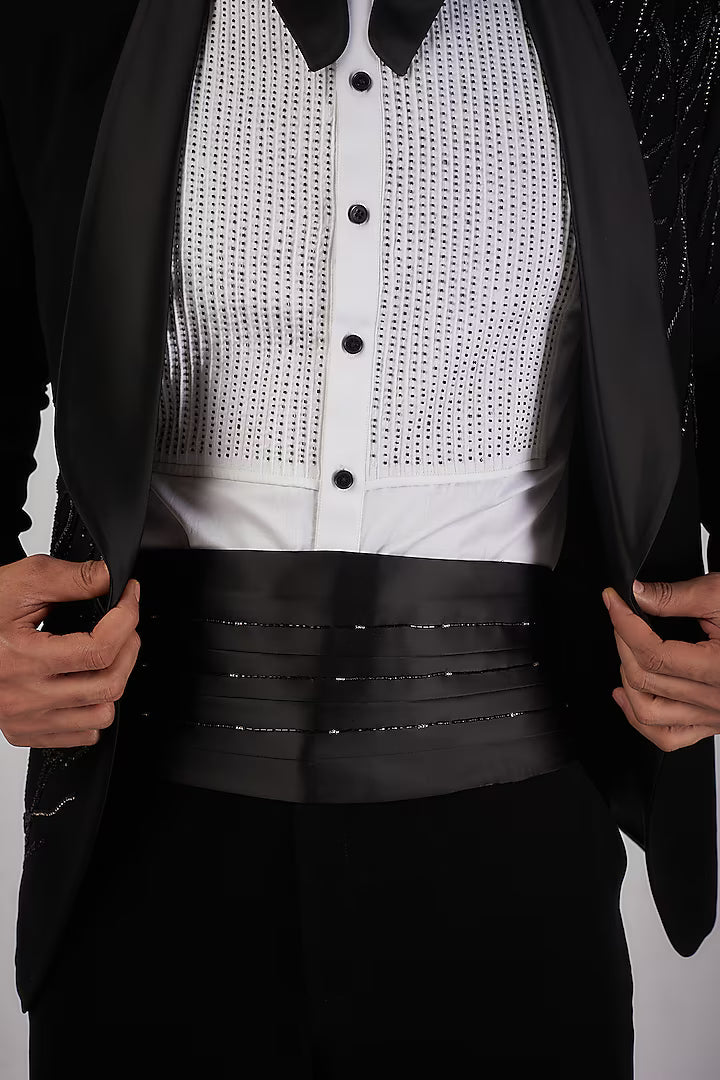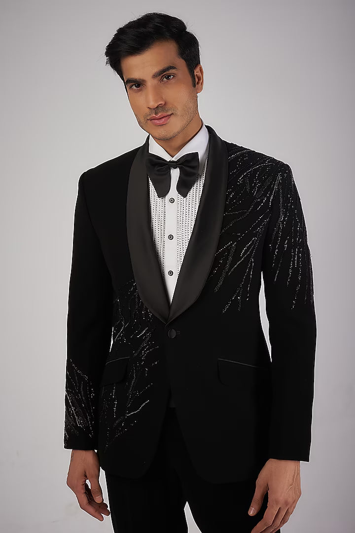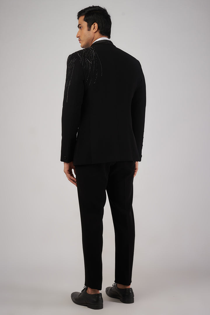 Black Sandwash Pearl Embroidered Tuxedo Set