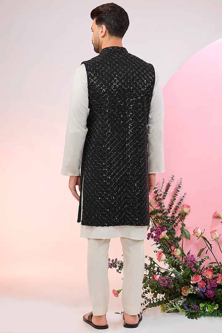 Black Silk Cutdana Embroidered Indowestern Jacket