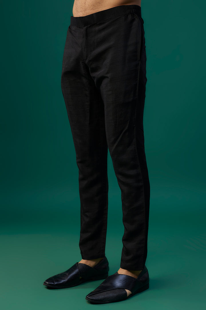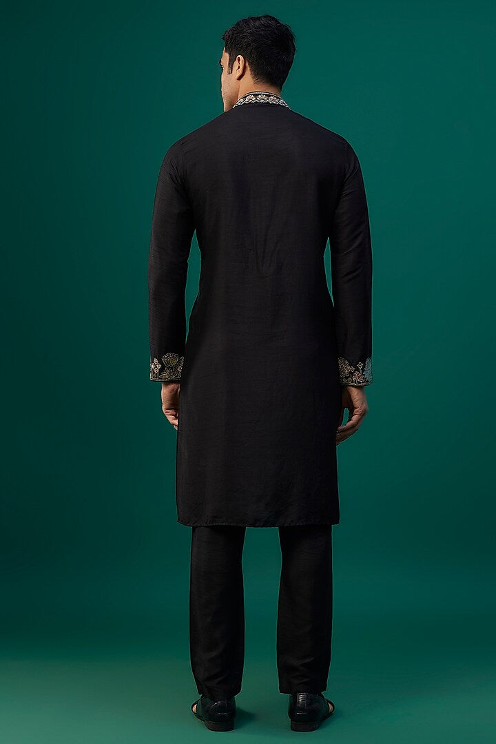 Black Tussar Resham Hand & Machine Embroidered Kurta Set