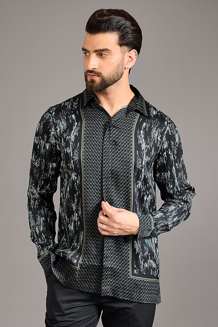 Black & White Crepe Printed Shirt