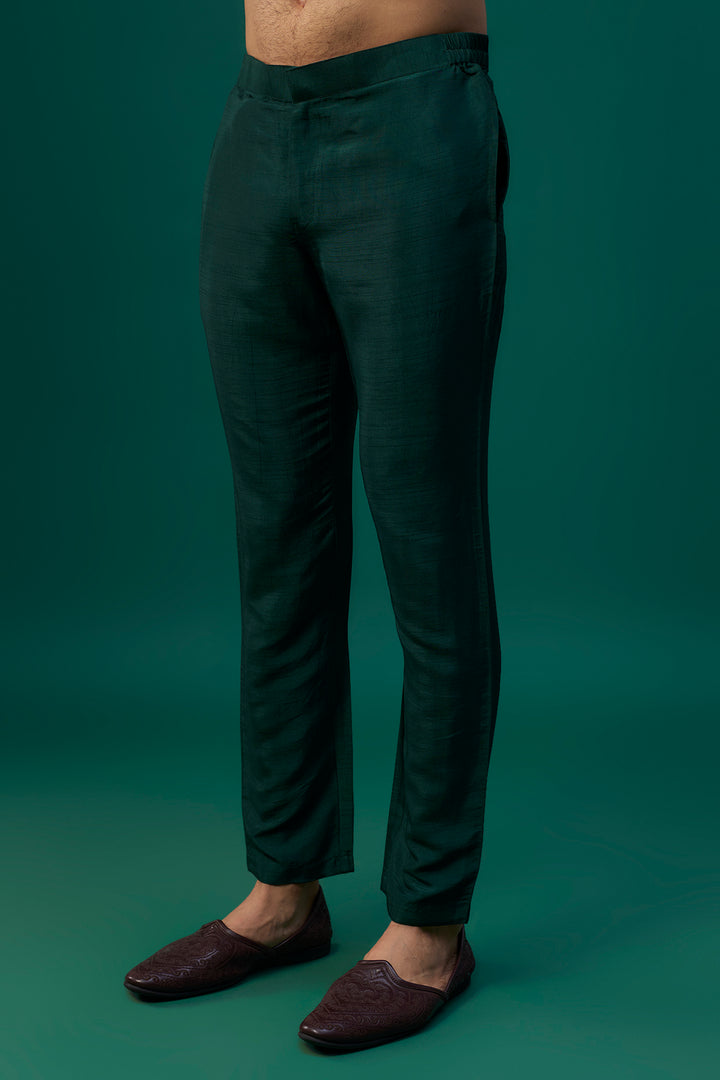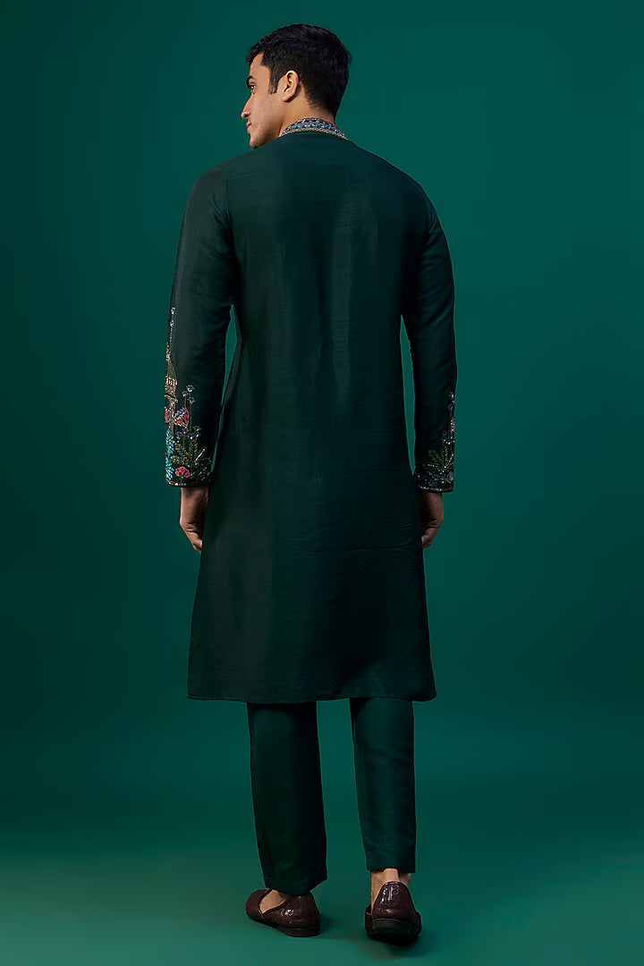 Emerald Green Tussar Resham Hand & Machine Embroidered Kurta Set