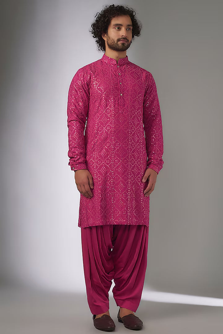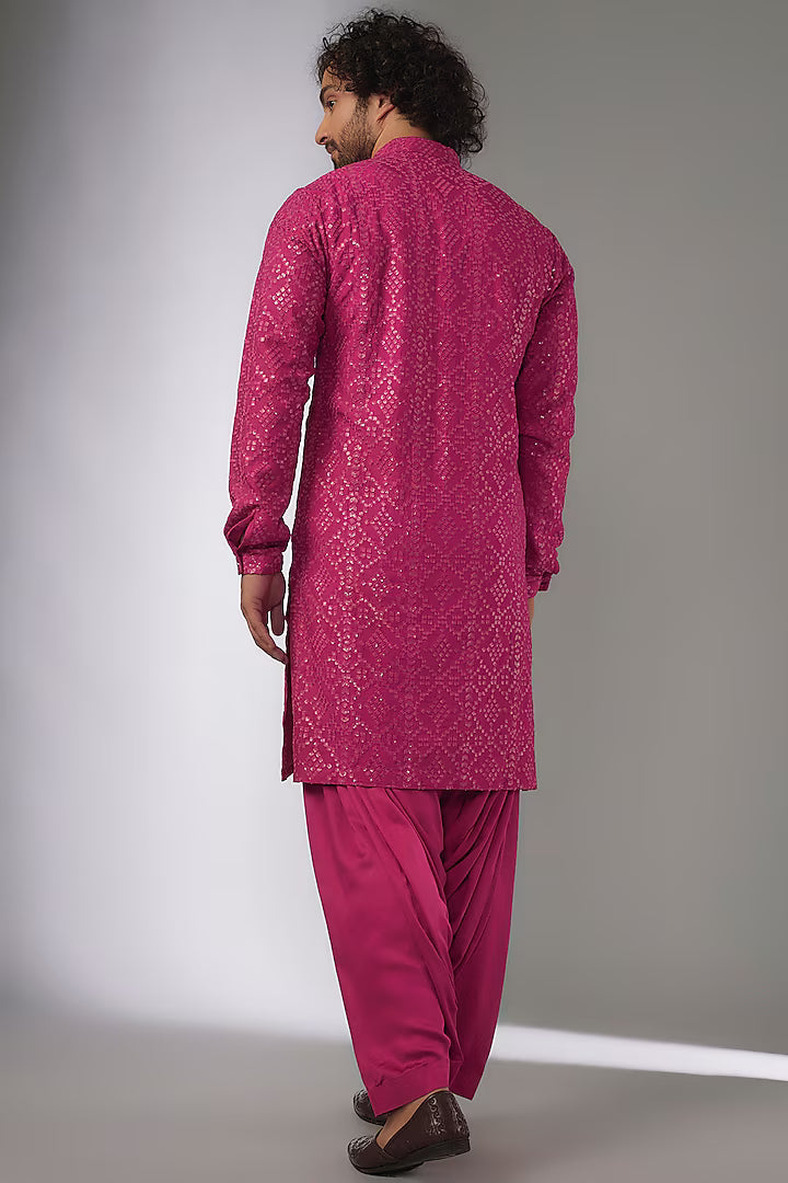 Hot Pink Dola Silk Thread & Sequins Embellished Kurta Set