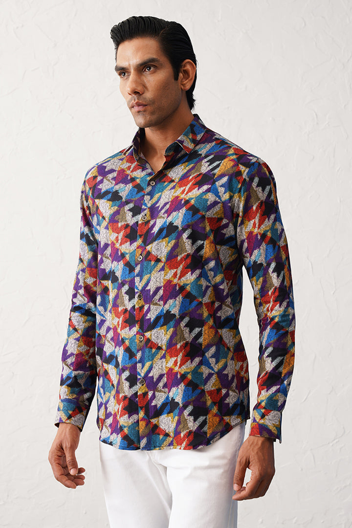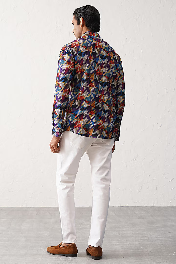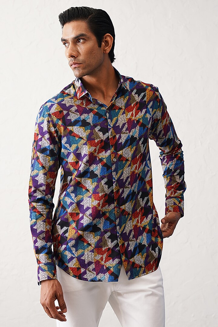 Multi-Colored Cotton Houndstooth Printed Shirt